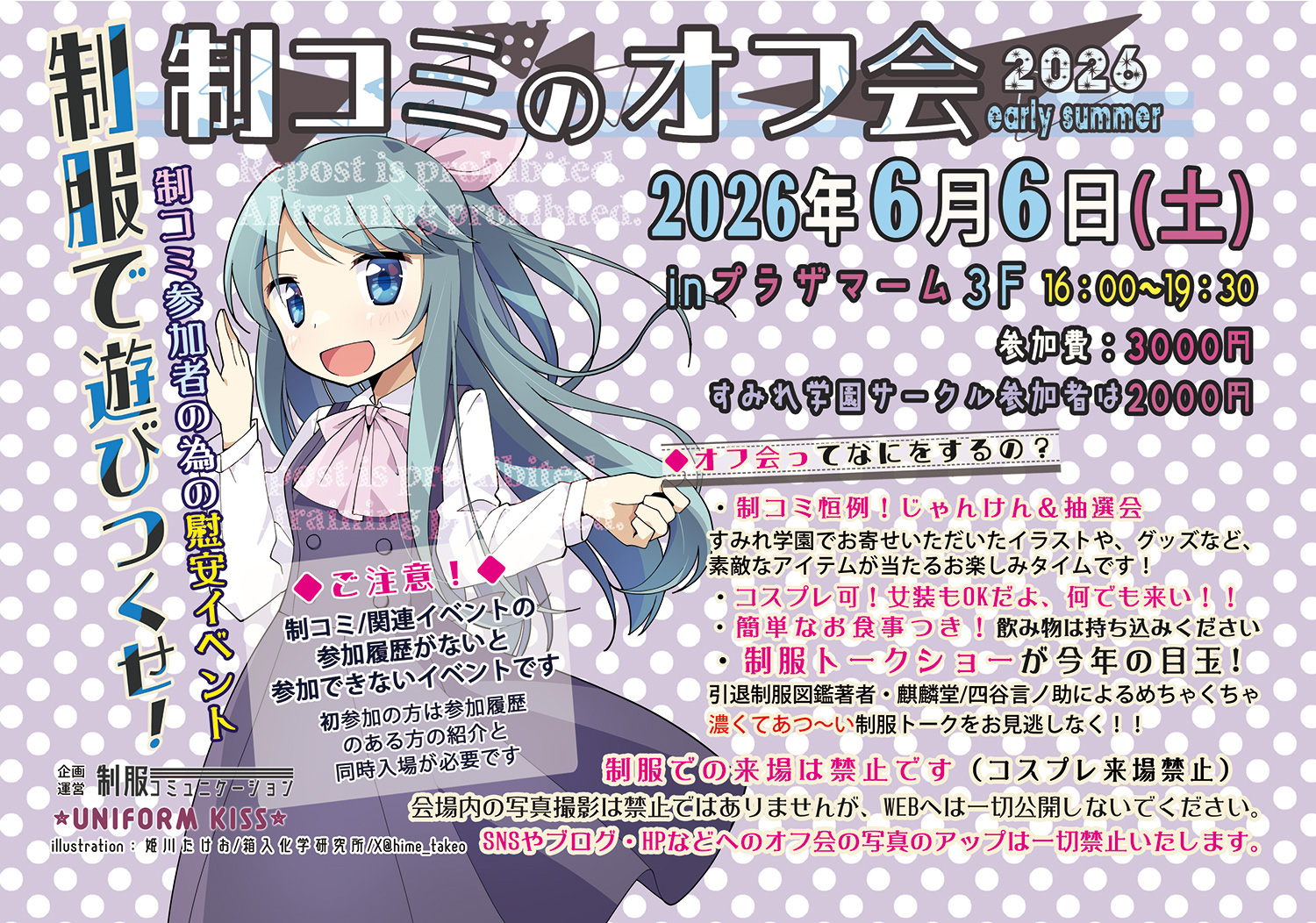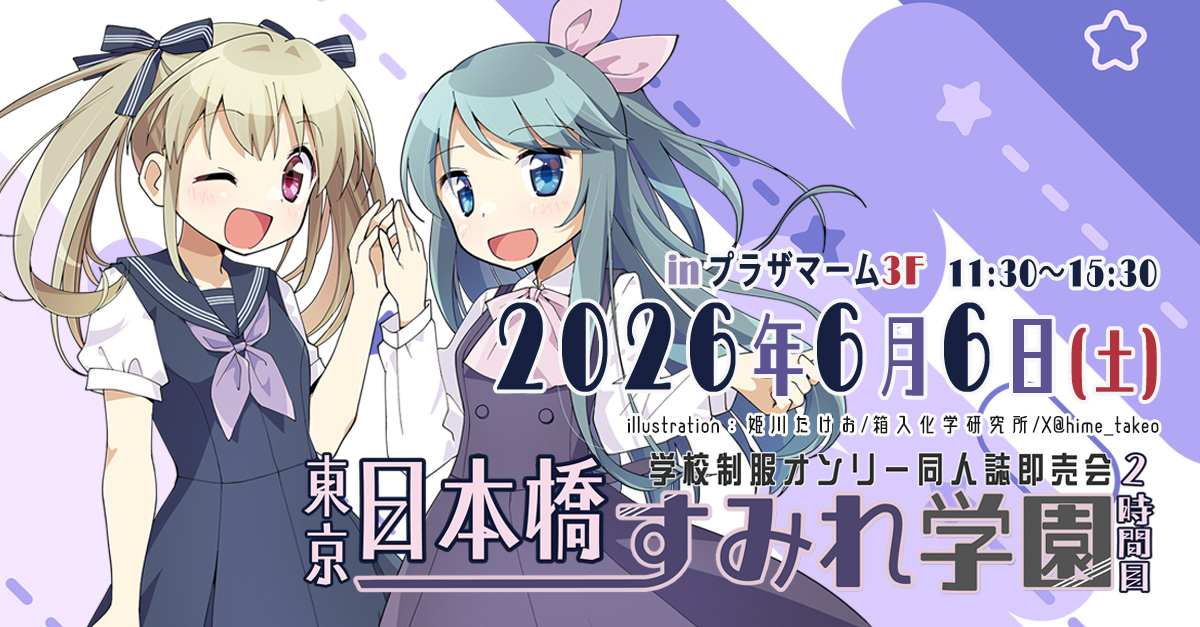 今年の展示/物販エリアは、オフ会の時間が短いため「東京日本橋すみれ学園2時間目」からサークル参加をしていただける方のみの募集です。